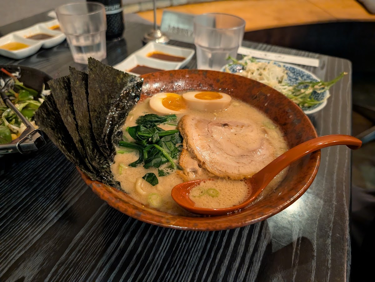 “ We went on a Monday around lunchtime, close to their closing time, and they were still very welcoming and friendly, helping us choose our dishes with patience. The music was pleasant and not too loud, and parking was easy to find. I ordered the Soy Tonkotsu Ramen and my husband had the Yokohama Eak Ramen — both were absolutely delicious. The broth was rich and flavorful, and the pork was tender, melt-in-your-mouth soft, and not fatty at all. I’m definitely coming back to try more options. Highly recommend it! ”